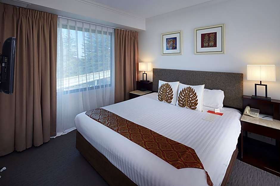 Spacious 36sqm room with 1 king bed or 2 single beds., 2 person spa bath, LCD TV with Foxtel / Cable TV Channels, work desk, tea/coffee making facilities, free Wi-Fi and mini-bar stocked with some free items. Some Deluxe Rooms feature a balcony. Bedding configurations and balconies are on request only and subject to availability.